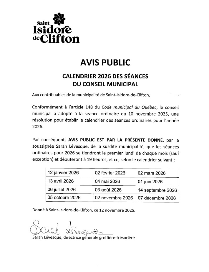 Voici la liste de tous les avis publics que vous pouvez consulter en format PDF.